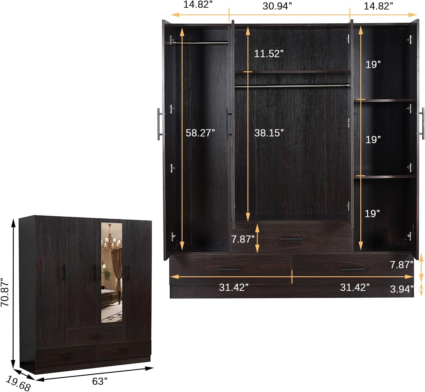1. Spacious Storage Solution: This 4-door armoire wardrobe provides ample storage space for your clothes, shoes, bedding, and more. Its generous dimensions make the wardrobe ideal for maximizing space in any bedroom.