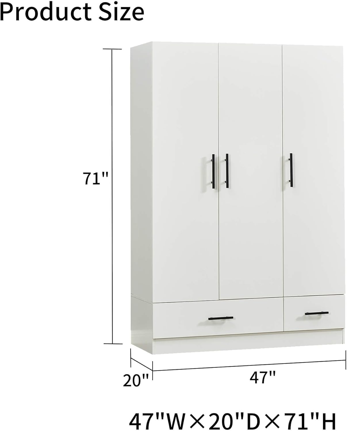 • [Efficient Storage Solution]-This wardrobe cabinet includes a storage cabinet, 2 storage drawers , and 1 hanging rods to keep your clothes neatly arranged and maximize space. The bedroom armoires ‘ white design adds brightness for bedroom. At the same time, the clothes cabinet can enhances storage functionality.